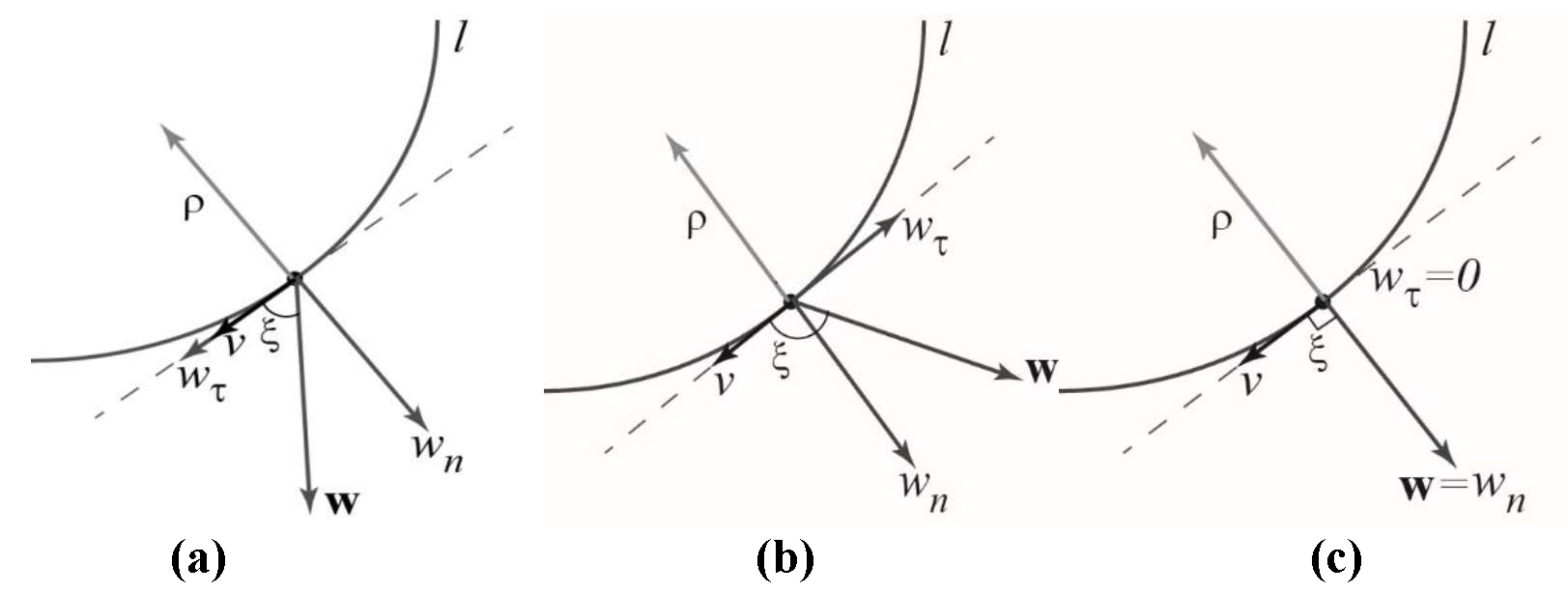 Рис. 2. К выбору типа движения изображающей точки: (a) ‒ ускоренное; (b) ‒ замедленное; (c) ‒ граница между ускоренным и замедленным движением ,