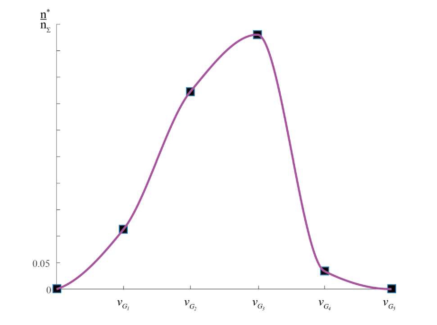 Fig. 10. Polygon of frequency distribution of conditional extremum of phase velocity is a topological description of cloud of points in fig. 9: n* is the number of points in the i-th segment, n∑ is the total number of points in the cloud