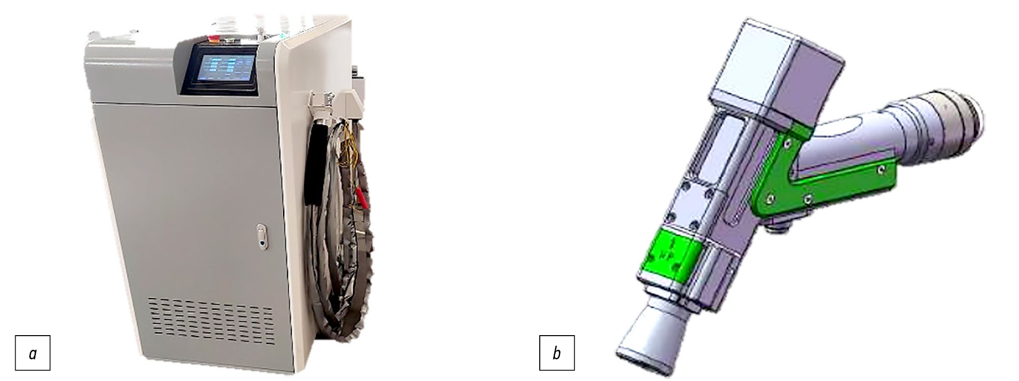 Fig. 2. Cleaning equipment: а, Raptor SFW-3000R device; b, RELFAR FWH20-S10A laser head.