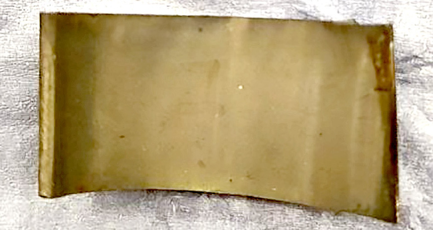 Для достижения цели лопатка из сплава ЧС-70ВИ подверглась резке по длине пера на несколько частей, одна из которых стала образцом-свидетелем. Эта часть не подвергалась очистке. С остальными образцами были проведены лабораторные экспериментальные исследования, направленные на изучение влияния входных параметров процесса лазерной очистки на полноту удаления ТБП. Далее все образцы подвергались металлографическим исследованиям для определения структуры материала, микротвердости и толщины ТБП.