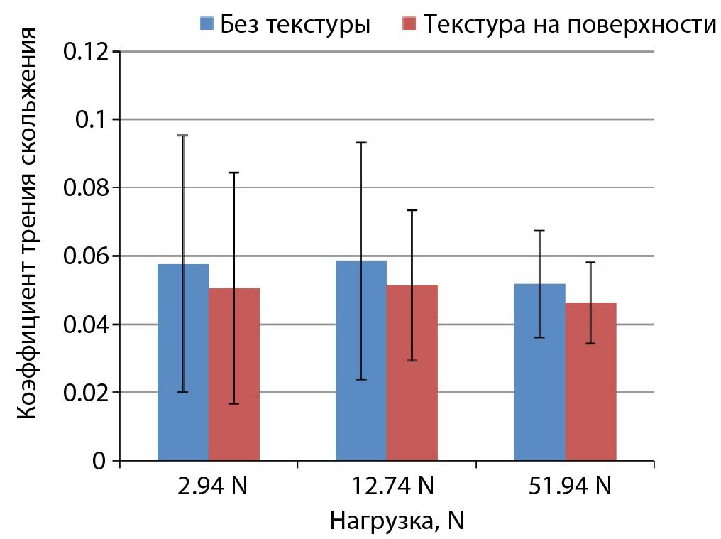 Рис. 5. Средние коэффициенты трения для текстурированных и гладких поверхностей.