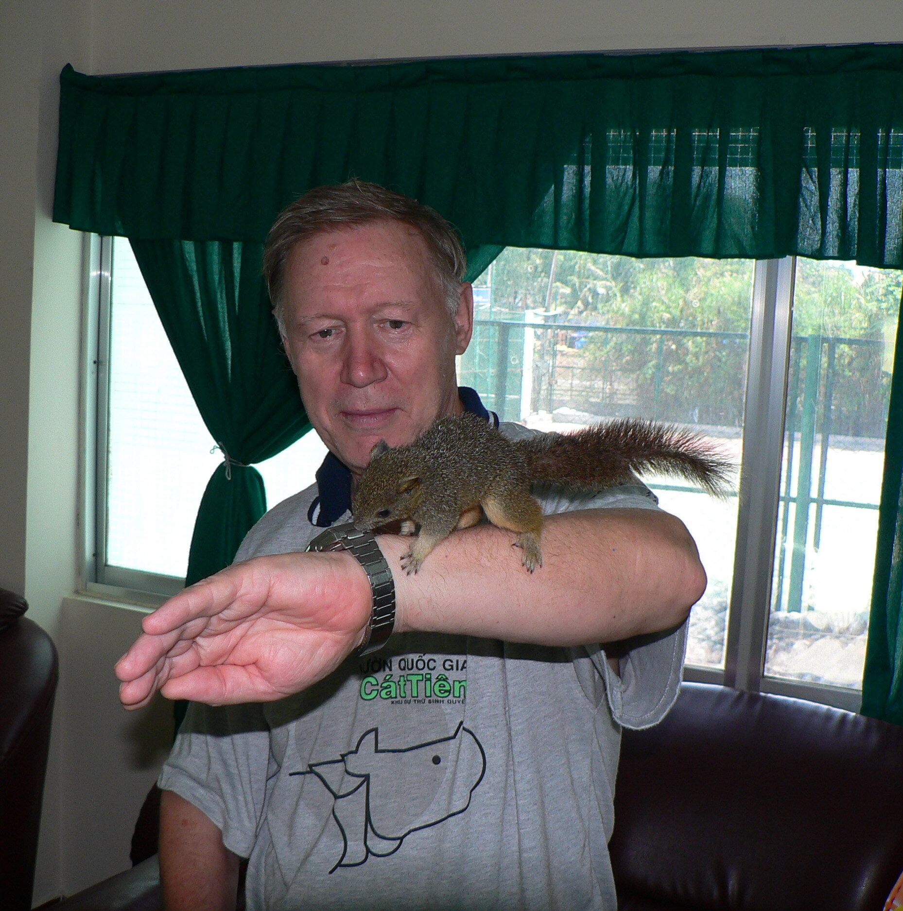 Fig. 4. G.V. Kuznetsov with the squirrel Masha. Photo: T.N. Filatova