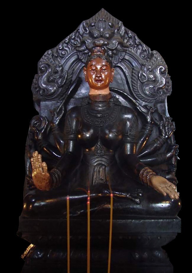 6According to research sources, the Poh Naga statue (Poh Inu Naga) in Tháp Bà/Po Nagar Temple in Nha Trang city, Khánh Hòa province, is a: Statue of goddess Po Nagar dating back to the 11th century, made of stone material in the full lotus position, with 5 pairs of hands holding different tools, the body is slim, the chest is wide, the neck is 3 lines high, and the face is benevolent. Along with that, there is the Kala face decoration project in the center, and the Makara face on both sides. [Đào Thái Hanh 1997: 177-180], [Nguyễn Minh San 2001: 253-270].