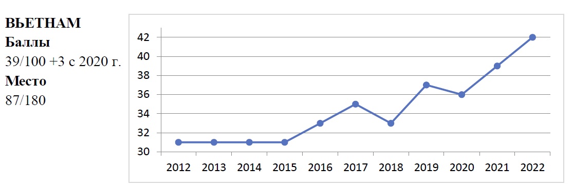 Рис. 1. Индекс восприятия коррупции во Вьетнаме (2012–2022). Источник: Corruption Perceptions Index. URL: https://www.transparency.org/en/cpi/2021/index/vnm