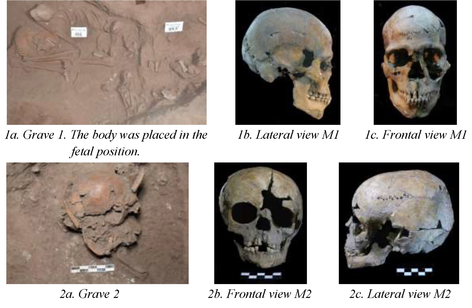 Fig. 9. Graves 1 and 2, and skulls from Cave C6.1. Source: [Nguyen Lan Cuong 2019]