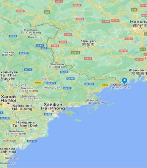 Рис. 3. Полуостров Чако (Trà Cổ, обозначен голубой меткой) расположен на северо-востоке вьетнамской провинции Куангнинь.