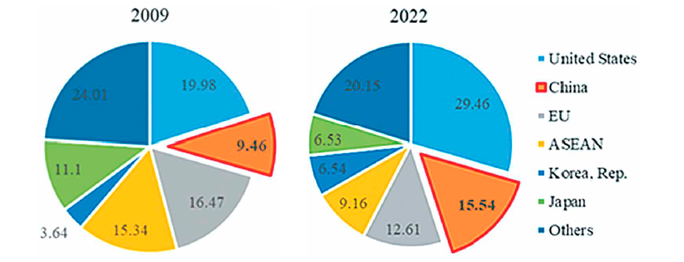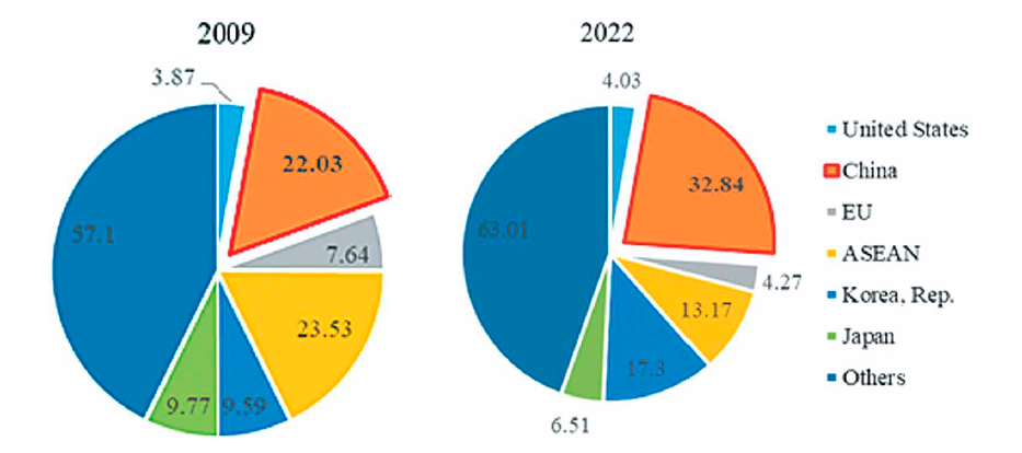 Fig. 3. The proportion of import from different countries in 2009 and 2022. Source: General Statistics Office of Vietnam