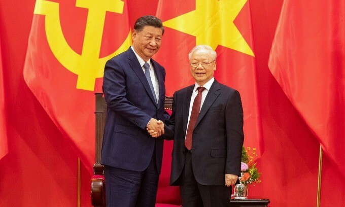 Рис. 1. Председатель КНР Си Цзиньпин и Генеральный секретарь ЦК КПВ Нгуен Фу Чонг. Ханой, 13 декабря 2023 г. Фото: Зянг Нгок