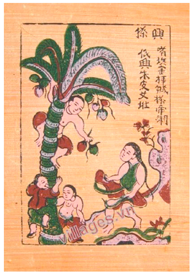Fig. 6. Scene of catching coconuts (Hứng dừa) – Đông Hồ paintings