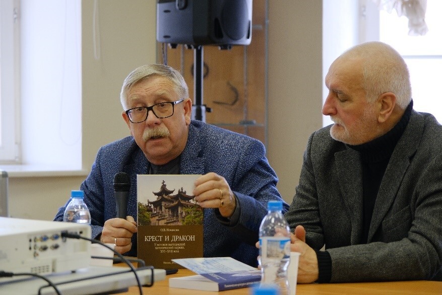 Главными книгами О. В. Новаковой можно считать учебник для вузов «История Вьетнама. Т. 2» и монографию «Крест и Дракон: у истоков вьетнамской католической церкви (XVI–XVII века)». Об этой уникальной книге на конференции рассказал её ответственный редактор, ученик и коллега О. В. Новаковой П. Ю. Цветов (рис. 2).