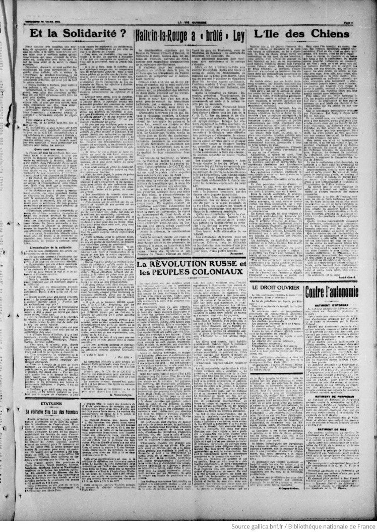 Рис. 1. Номер газеты La Vie Ouvrière от 21 марта 1924 г. Источник: URL: https://gallica.bnf.fr/ark:/12148/bd6t5562226k/f5.item (дата обращения: 21.03.2024)