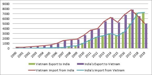 Fig. 1. Bilateral trade between India and Vietnam (2000-2019). Source: IMF Database