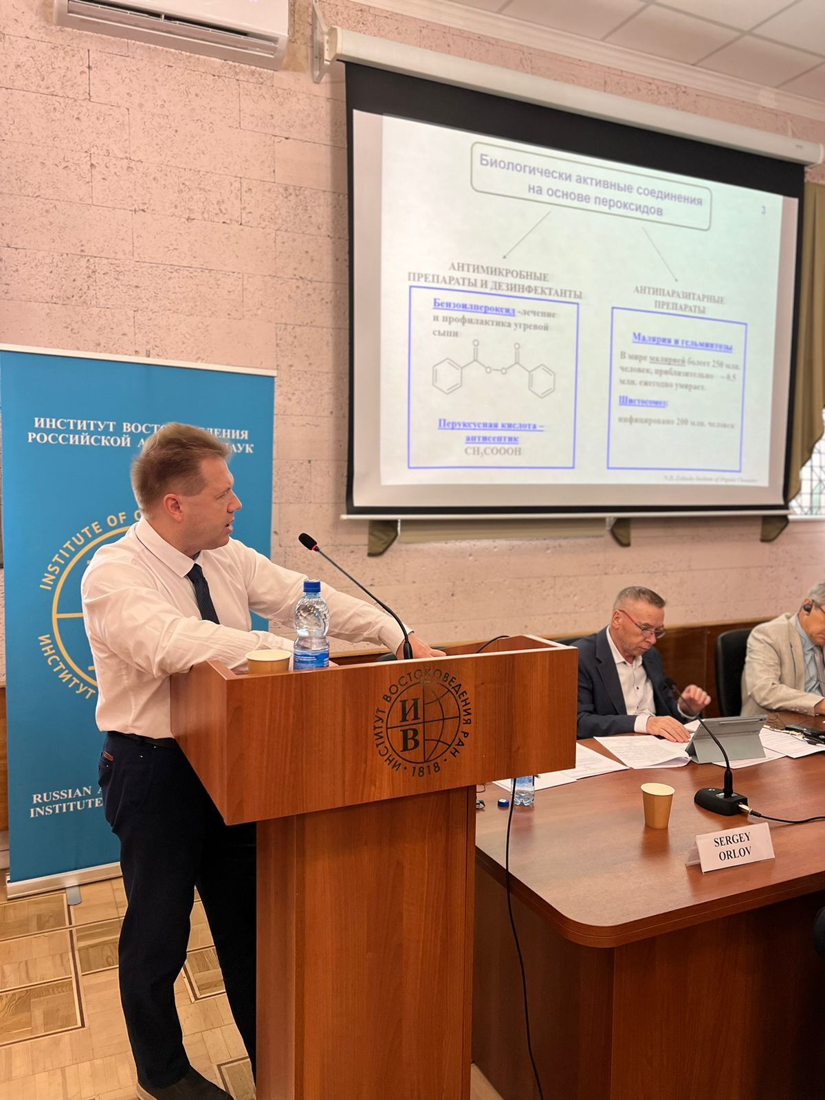 Рис. 4. А. О. Терентьев выступает на конференции в стенах ИВ РАН. Фото ИВ РАН