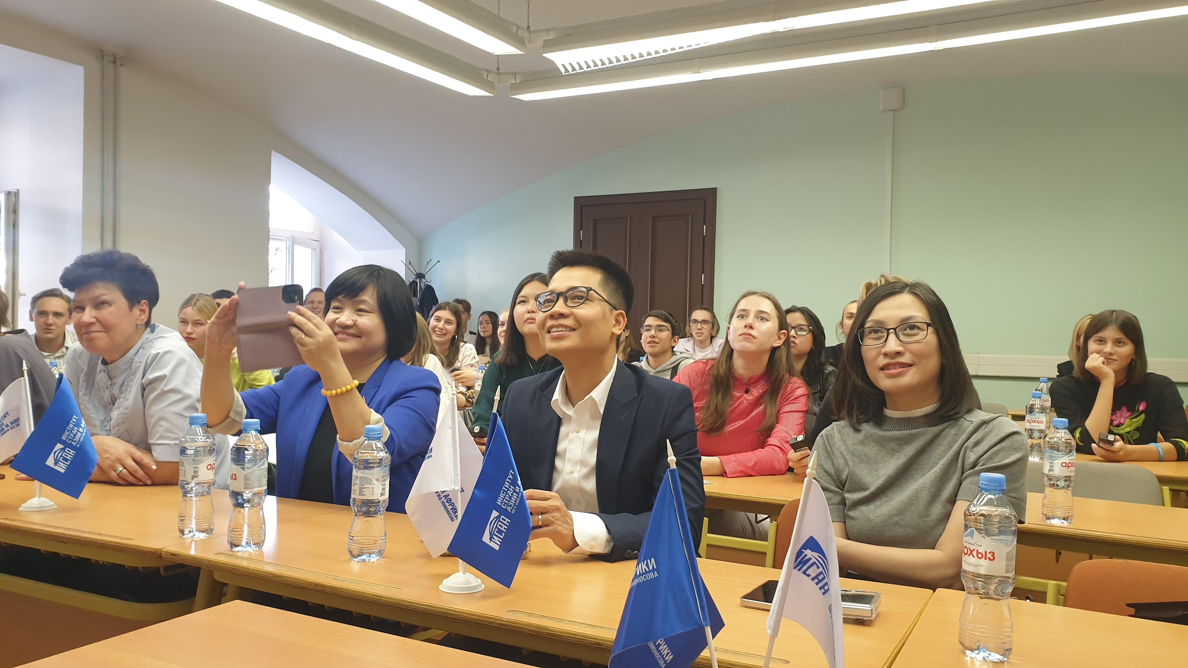 Почётными гостями мероприятия стали представители оказавшего содействие организации и проведению квиза Фонда содействия развитию российско-вьетнамского сотрудничества «Традиции и дружба» во главе с техническим директором Нгуен Хоанг Зянгом, представитель Посольства СРВ в РФ, представители руководства ИСАА, а также преподаватели вьетнамского языка и вьетнамоведения из других вузов Москвы (Рис. 3). Всего зал собрал около 60 человек.