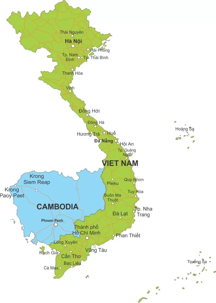 Рис. 1. Карта Камбоджи и Вьетнама.