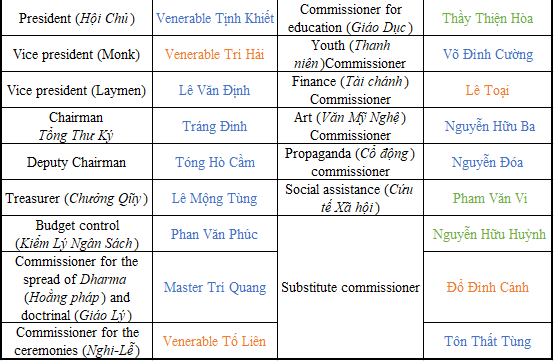 After the meeting, the first administrative committee (Ban Quản trị Trung Ương) of the GBA was elected (Table 1):