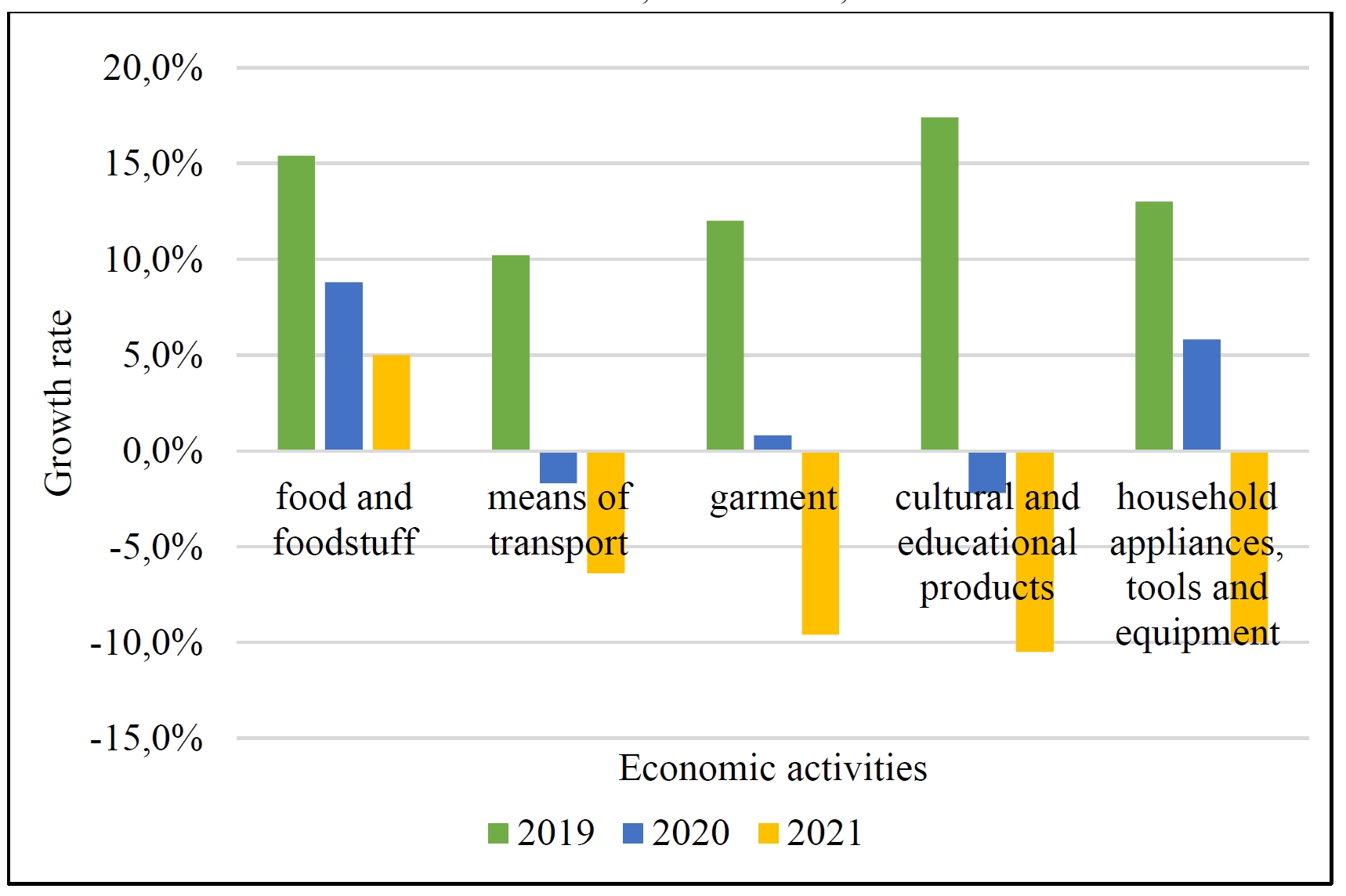 Graph 8. The growth rate of retail sales of product groups in 9 months of 2019–2021