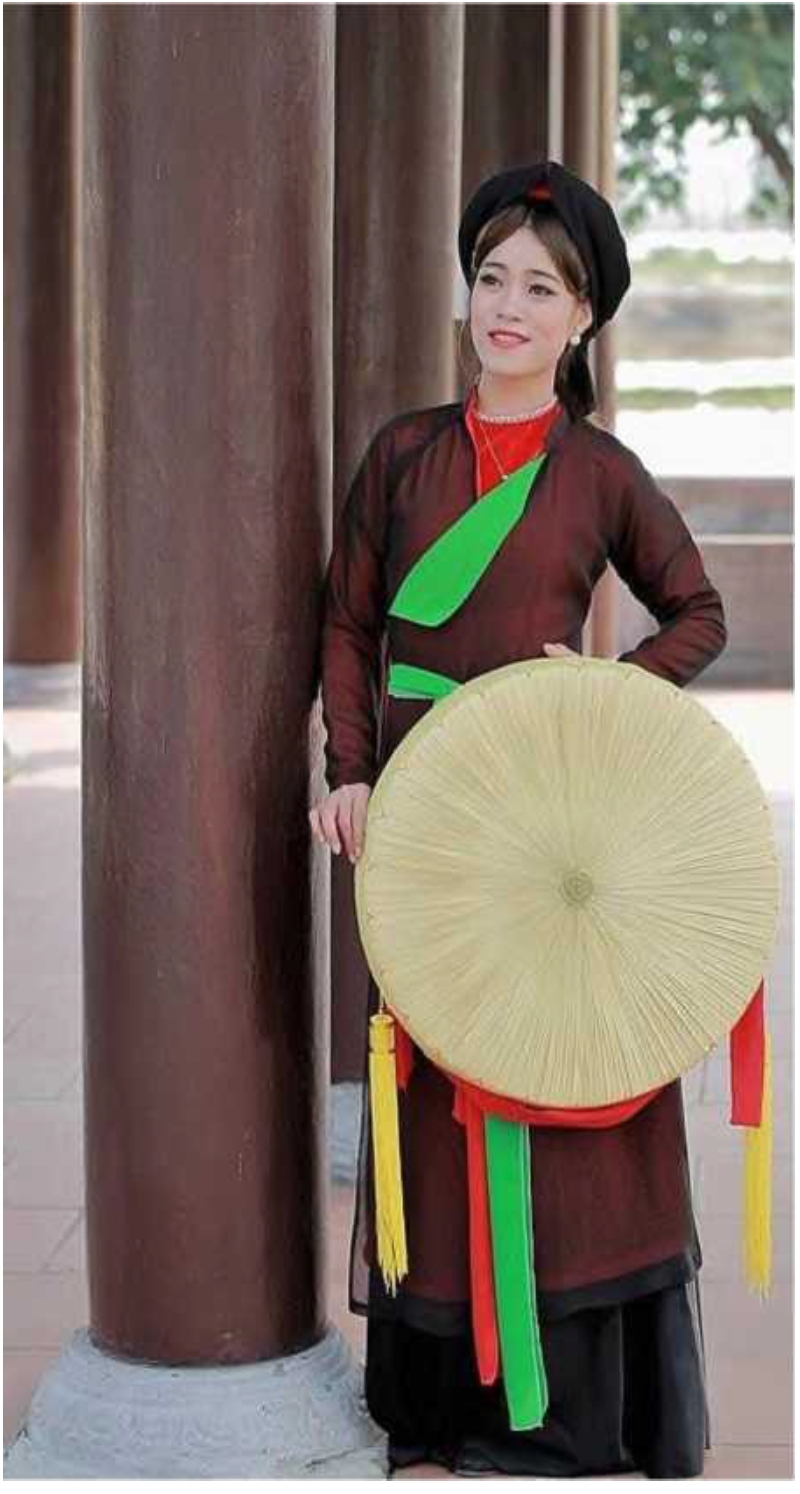 Fig. 1. A girl in an áo tứ thân costume with nón quai thao headdress. North Vietnam, late 20th century.