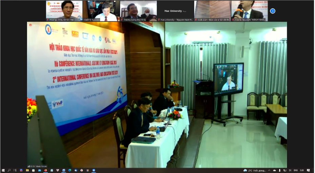 On November 26–27, 2021 Hue, the former Emperor’s capital, was the place of the 2nd International Scientific Conference on culture and education (ICCE 2021) with the theme of “The New School Education in East Asia and Vietnam from the First Half of the 19th to the End of the 20th Centuries”. The conference was held in the mixed format. Sixty-one papers were selected out of nearly 80 papers submitted to the Conference by more as 40 academic and educational institutions of the SRV and foreign countries. The working languages of the conference were Vietnamese, French and English. It consisted of the plenary session and five panels with the following themes: neoclassical education in Vietnam, neoclassical education in East Asia, literature, education and culture. Main reports (45 min.) were delivered by researchers of different countries: Doctor Truong Cong Quynh Ky and Doctor Nguyen Thi Phuong Ngoc (Vietnam), Doctor О. Bable and Doctor L. Chivay (France), Professor V. Kolotov (Russia), Professor S. Gopinathan (Singapore). The reports by key-participants raised the problems of the impact of Western education system and political thought on education reforms in Vietnam, Korea, China and Singapore. V. Kolotov delivered the report with the theme “The Impact of Soviet Political Doctrine on Vietnam in the mid-20th Century in the Sphere of Political Theory” (Fig. 3).