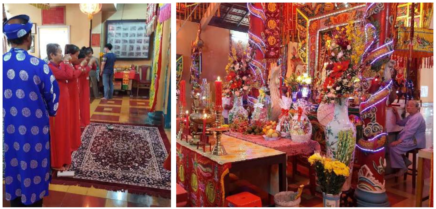 Рис. 4. Праздничная церемония перед алтарями храма богинь пяти стихий на территории общинного дома Тхангтам г. Вунгтау. Фото автора, ноябрь 2018 г.