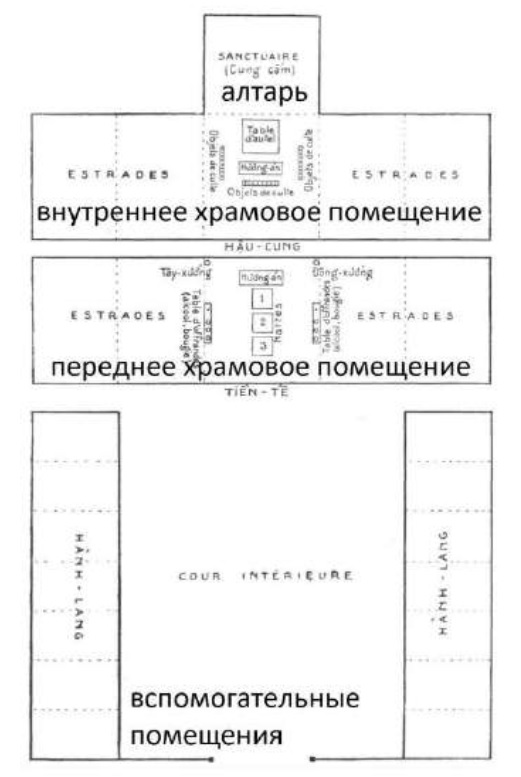 Рис. 5a. Здания типичного общинного дома на севере Вьетнама (схема). Источник: [Nguyễn Văn Khoan 1930:114]