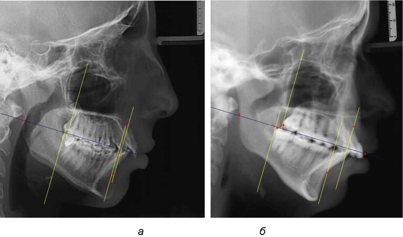 При ретроспективном исследовании оценивались телерентгенограммы 58 пациентов с физиологической окклюзией и 39 телерентгенограмм с аномалиями окклюзии в сагиттальном направлении.