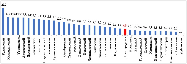 Наибольшие показатели отмечались в Руднянском районе, которые в 4,3 раза превышали показатели по области в целом. В Киквидзензенском районе Волгоградской области обеспеченность передвижными подразделениями составила 13,7 на 100 тыс. населения.