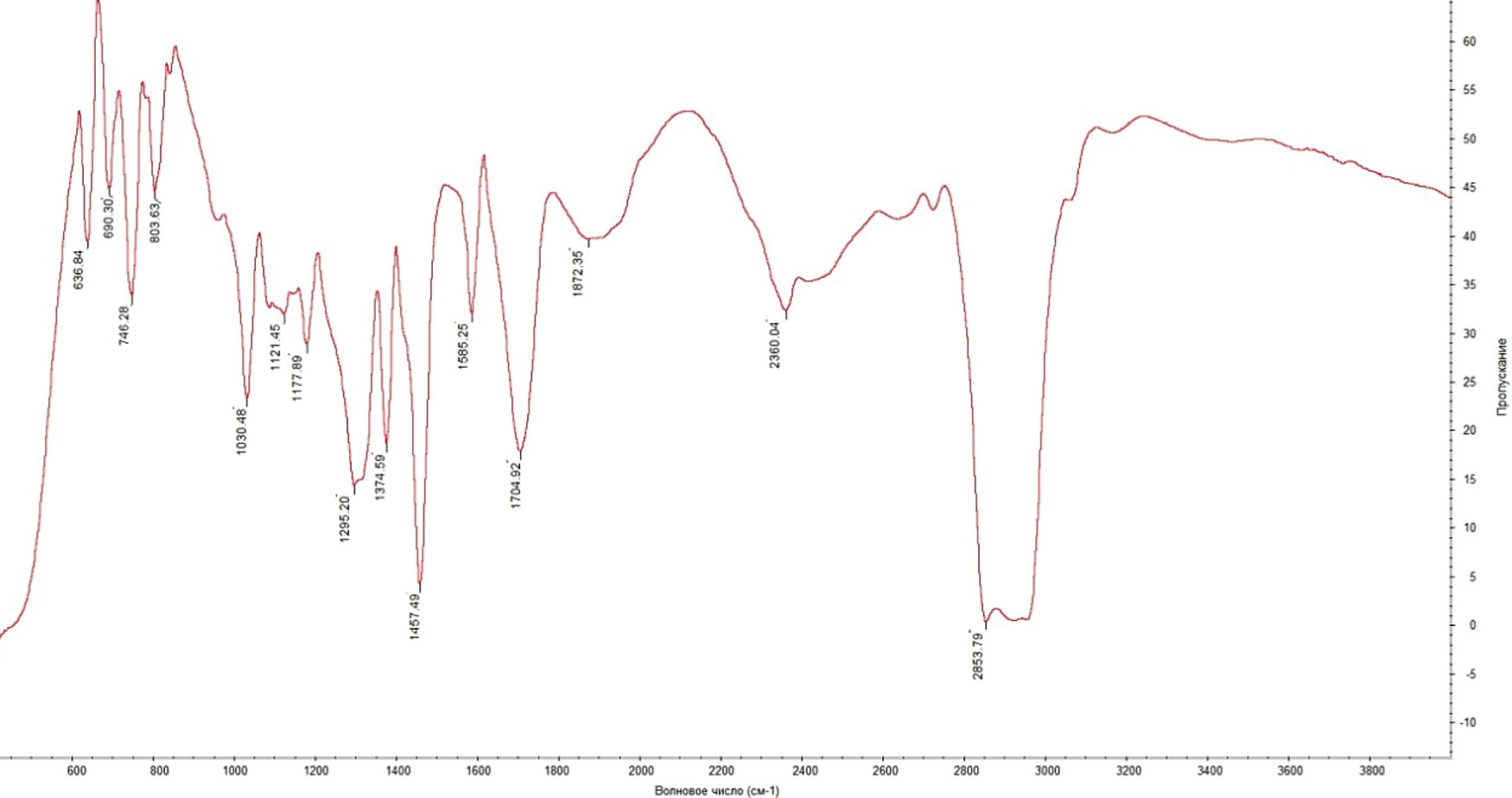 - пики средней интенсивности 636,84; 690,30; 746,28; 803,63; 1030,48 говорят о наличии брома в структуре соединения;