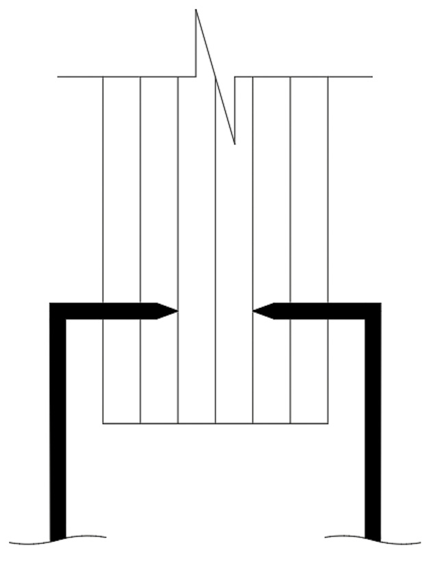 При проведении натуральных испытаний (рис. 2) полученные результаты позволили сформулировать ключевое допущение: при нагрузках, вызывающих заметную деформацию древесины, изгибом защемленной части скобы можно пренебречь, считая ее геометрию приблизительно прямой.