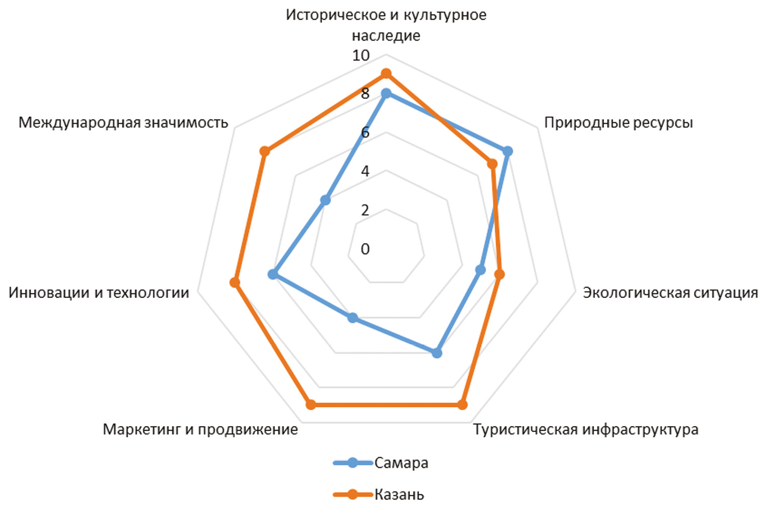 Выводы. Самара имеет существенный потенциал, требующий целенаправленных усилий для его реализации. При поверхностном сравнении города обладают схожими характеристиками, однако Казань опережает Самару по уровню туристической привлекательности и объему турпотока. Только комплексная реализация представленных мер позволит Самаре раскрыть свой туристический потенциал, стать привлекательным направлением для туристов и успешно конкурировать с другими крупными туристическими центрами, такими как Казань.